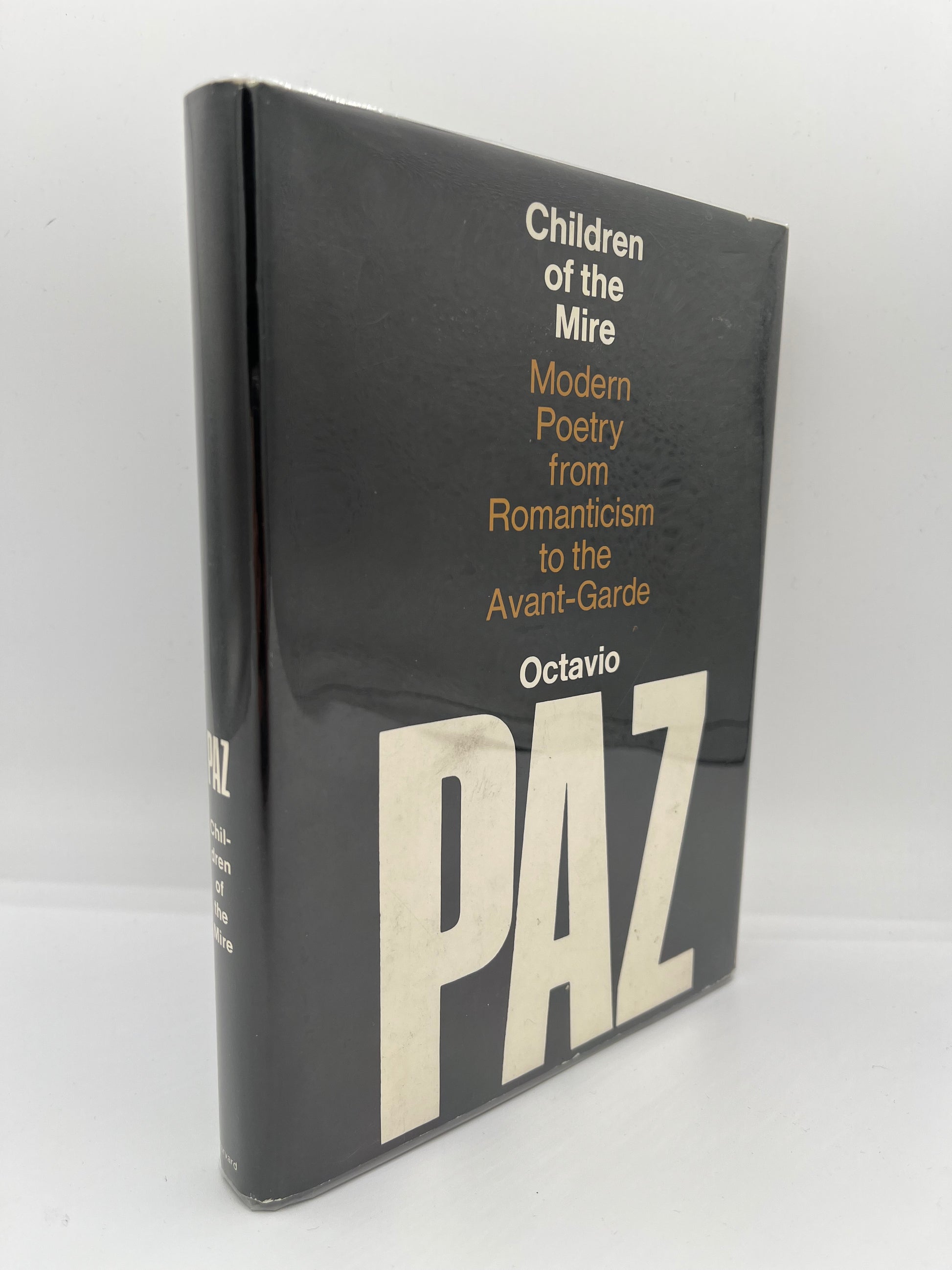 Cambridge: Harvard Press, Paz, Octavio "Children of the Mire: Modern Poetry from Romanticism to the Avant-Garde." Signed first editioon 8ov. Black paper over boards with "PAZ" printed in white on front in large letters. Signed at title page. Some mild wear to bottom edge, with slight scrape to bottom of boards near spine. DJ in mylar sleeve. 186 pp.