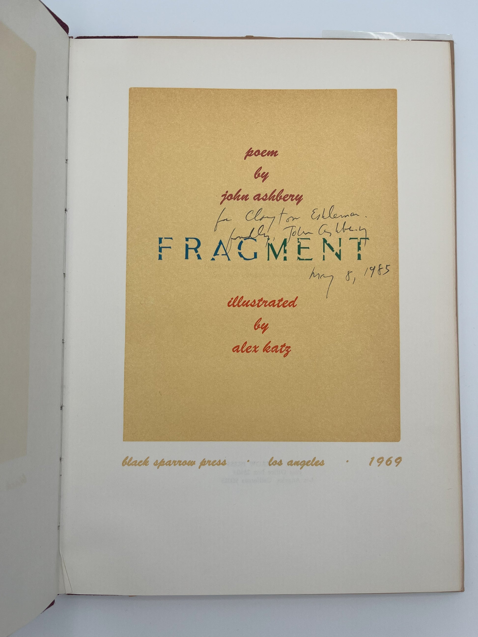 Fragment, signed by Ashbery and Katz. Inscribed by Ashbery to Clayton Eshleman.