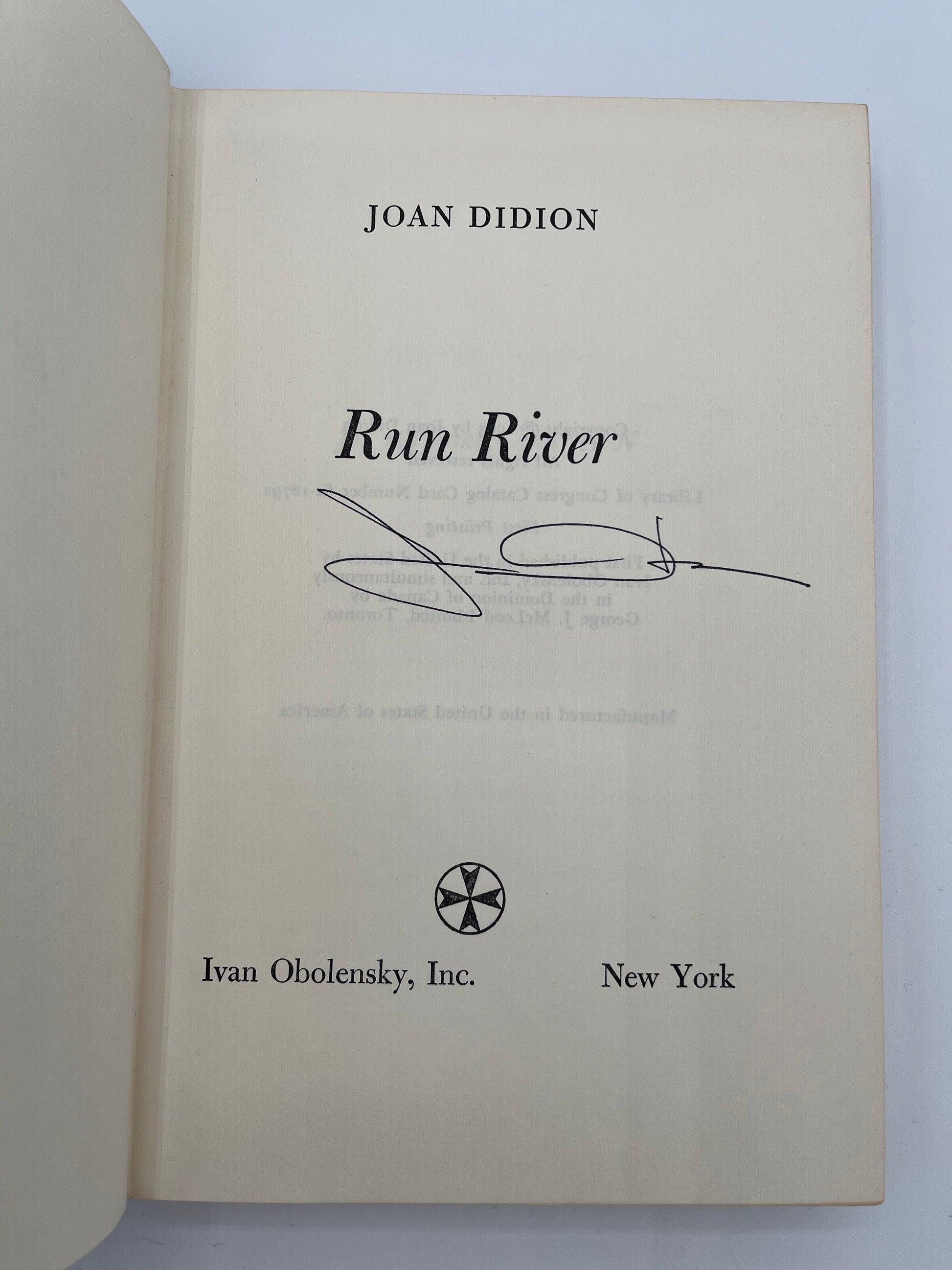 New York: Oblensky, 1963. Didion, Joan "Run River." Signed copy of Didion's debut novel. Blue cloth over boards stamped with title in white. Some rubbing to cloth at corners. Binding tight with slight lean. Rare as a signed book. 264 pp.